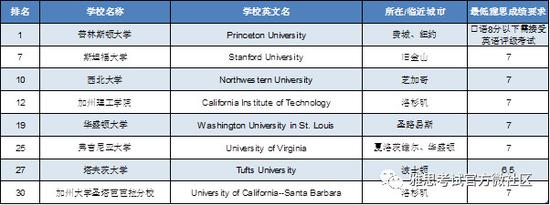 同学们想要瞄准美国不是难事,目前雅思成绩已经受到美国超过3400所院校,包括说有常青藤名校的认可,双手送上2019U.S.News全美大学排名Top30中位于城乡结合部的学校,及雅思分数要求: